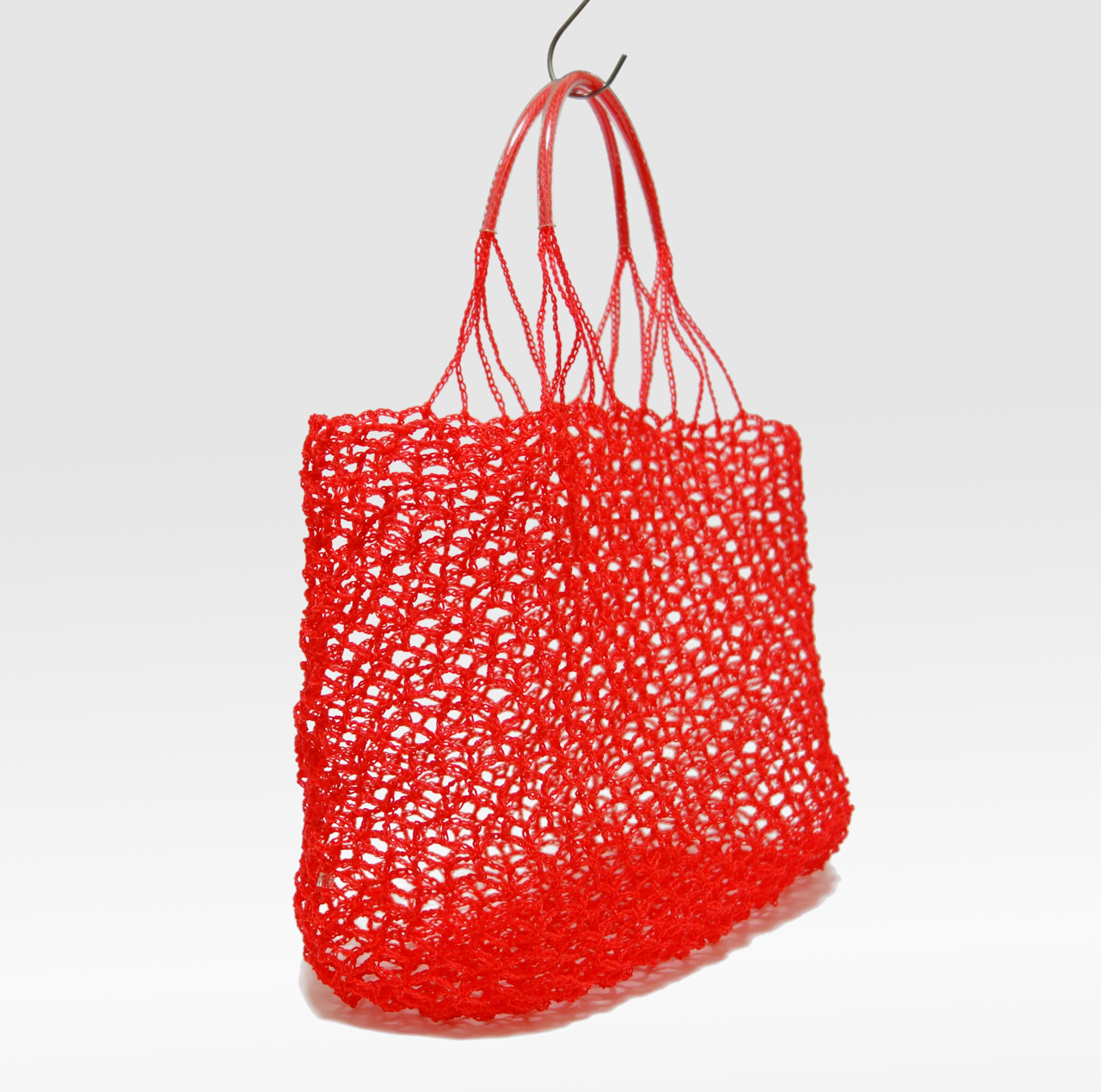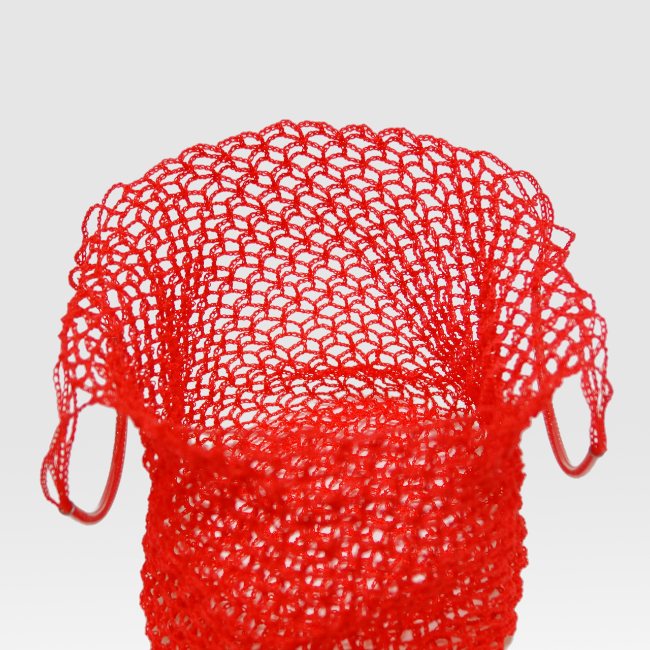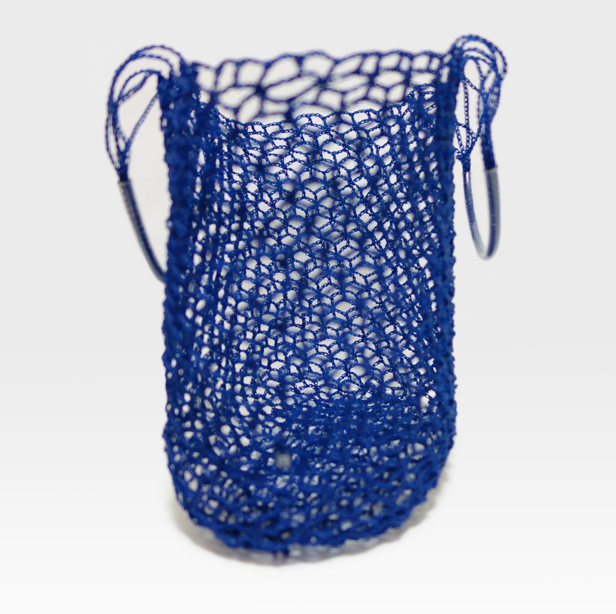 編み方の特性により、中に入れる物の形や重さによって編み模様が少しずつ表情を変えます。