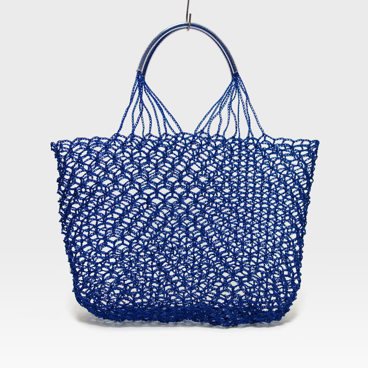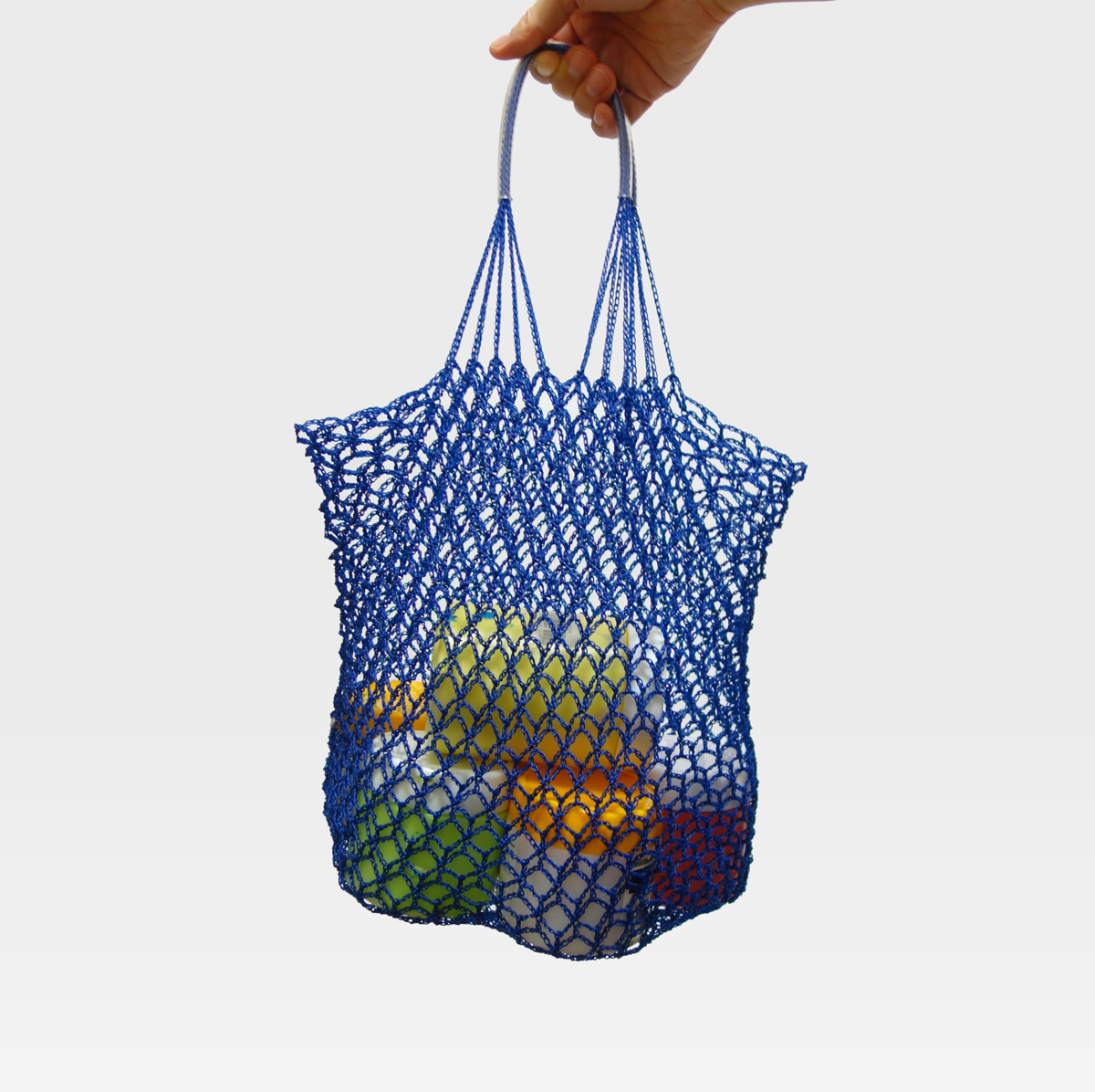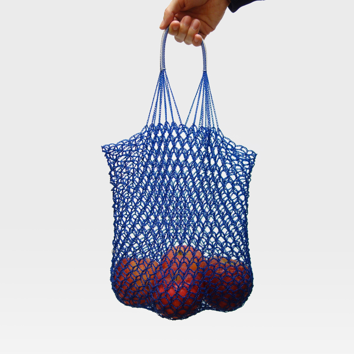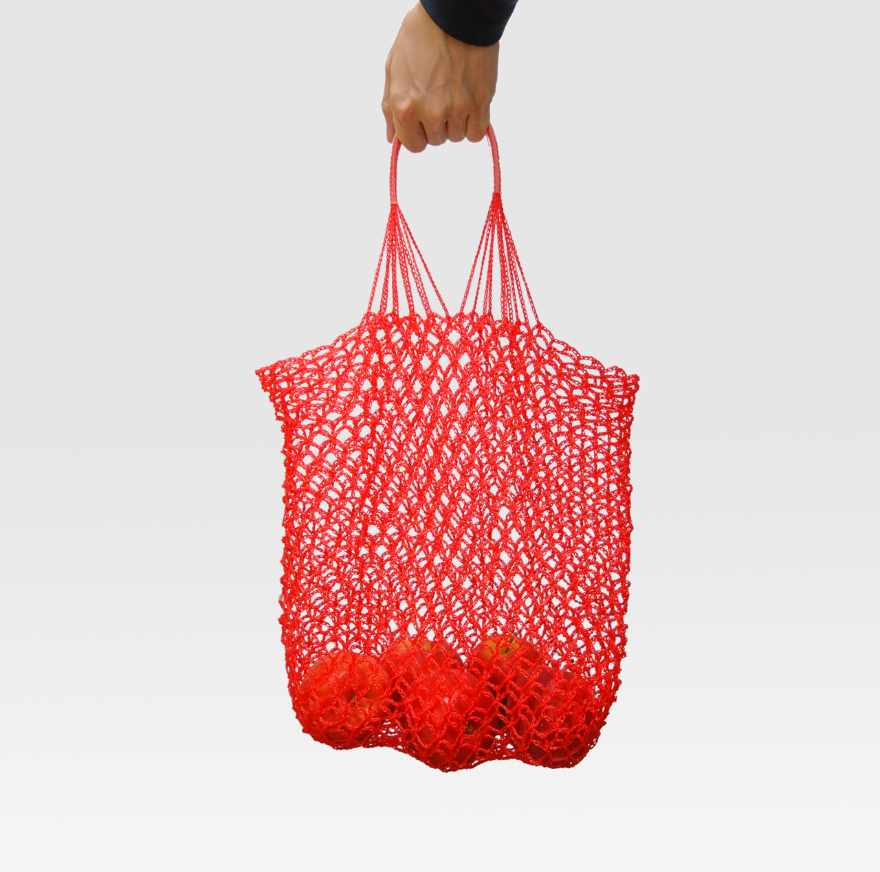 編み方の特性により、中に入れる物の形や重さによって編み模様が少しずつ表情を変えます。
