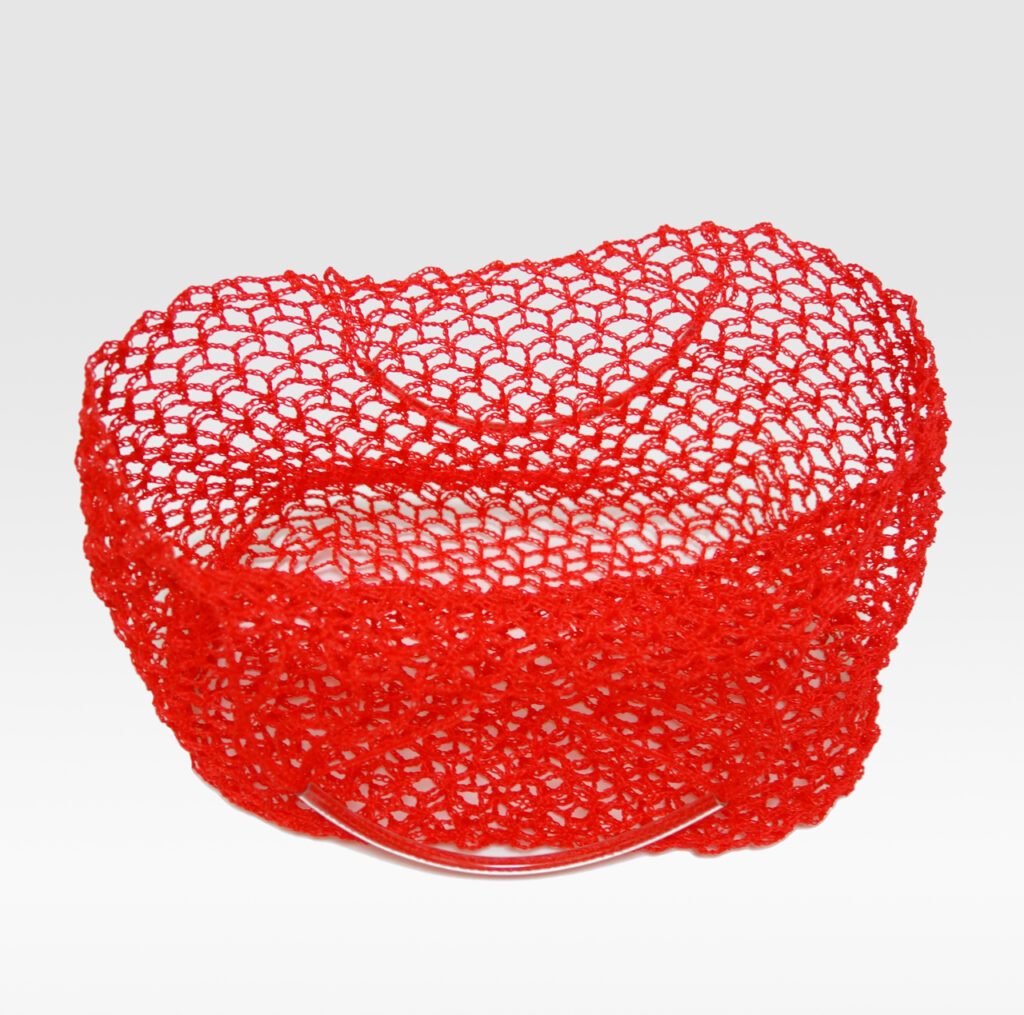 手編みの作品は、透明な糸を使用した連続パターンで編まれており、透明に見えても繋がっているところなど、画像ではわからない部分も実際に見にきていたきたいです。