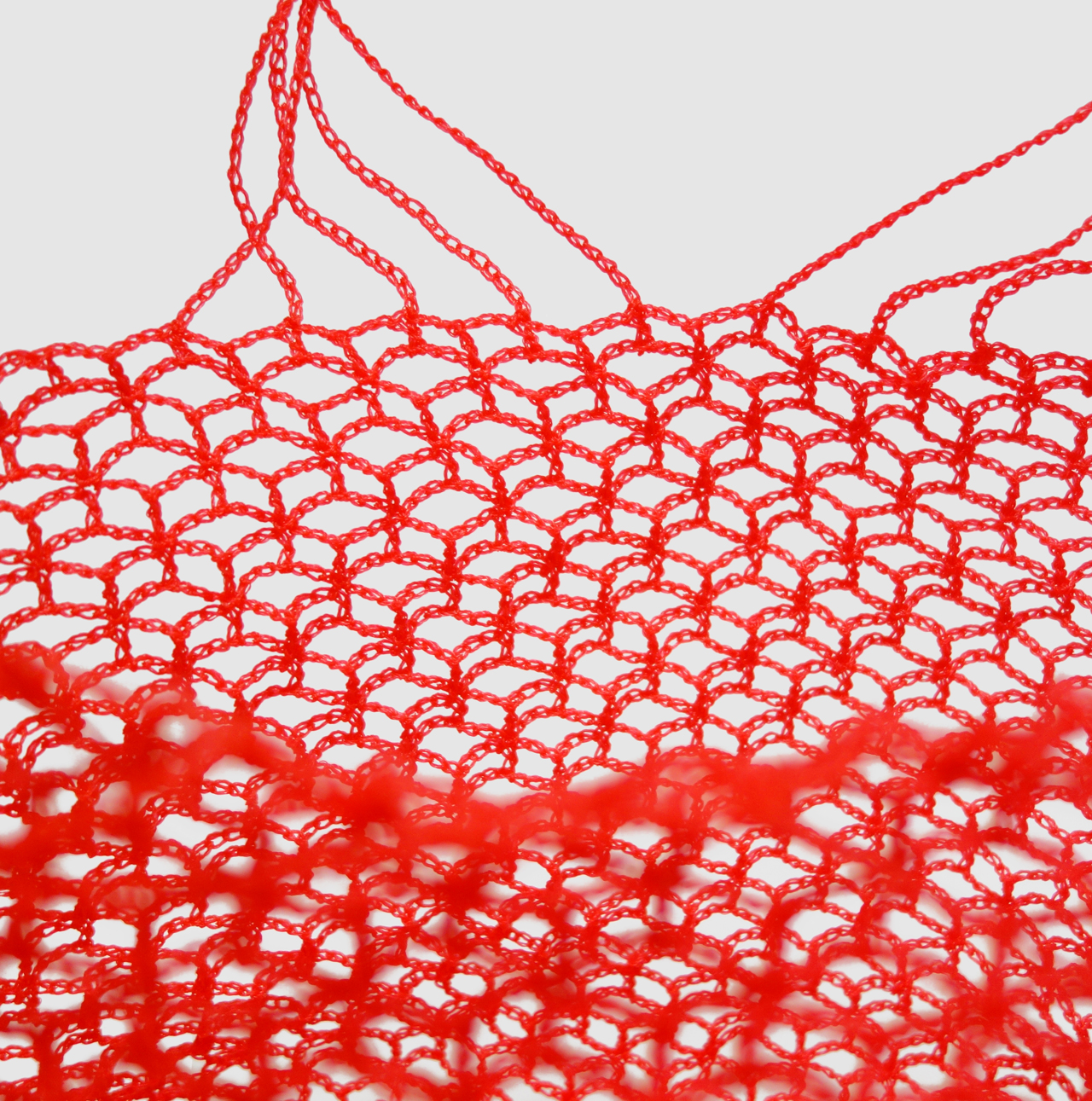 全ての編み地は透明の糸が使われており、それがかなり重要な働き持っていて、その黒子の様な存在感も感じて頂きたいです。